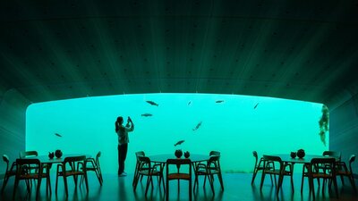 What’s unique: Europe’s only underwater restaurant (location) – a concrete monolith half-submerged in the North Sea with floor-to-ceiling marine views.